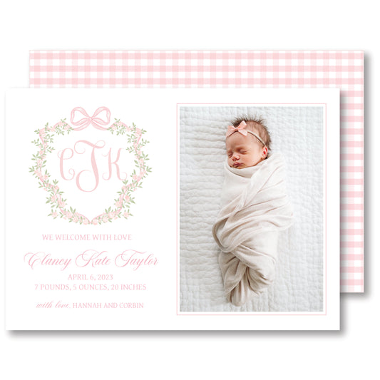Pink Crest Baby Announcement
