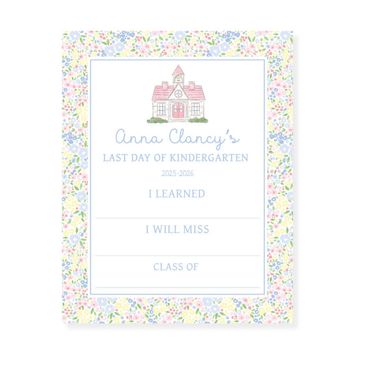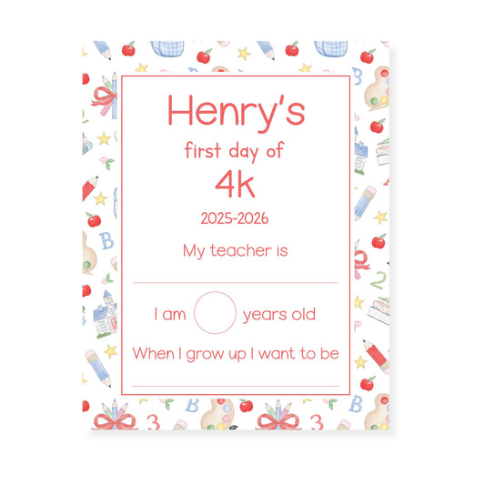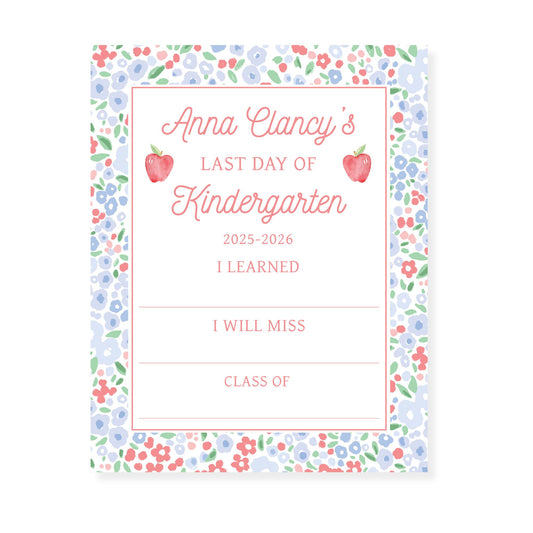 Fill in Blank Ditsy Apple First and Last Day of School Sign