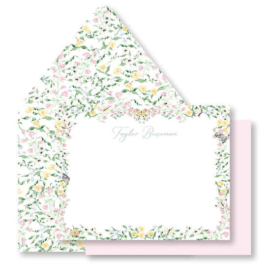 Scalloped Ditsy Floral Stationery in Red, Blue & Purple