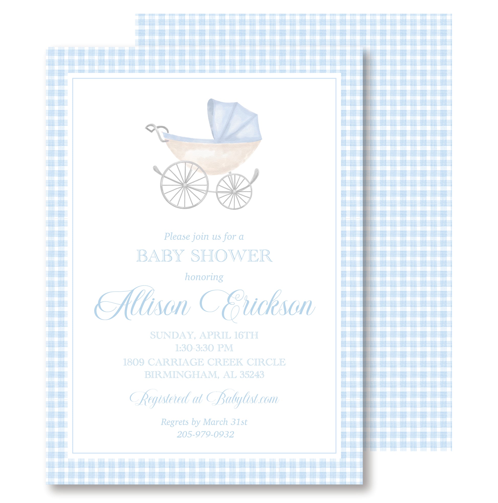 This invitation is printed on 120 lb. eggshell white card stock and includes envelopes to match.