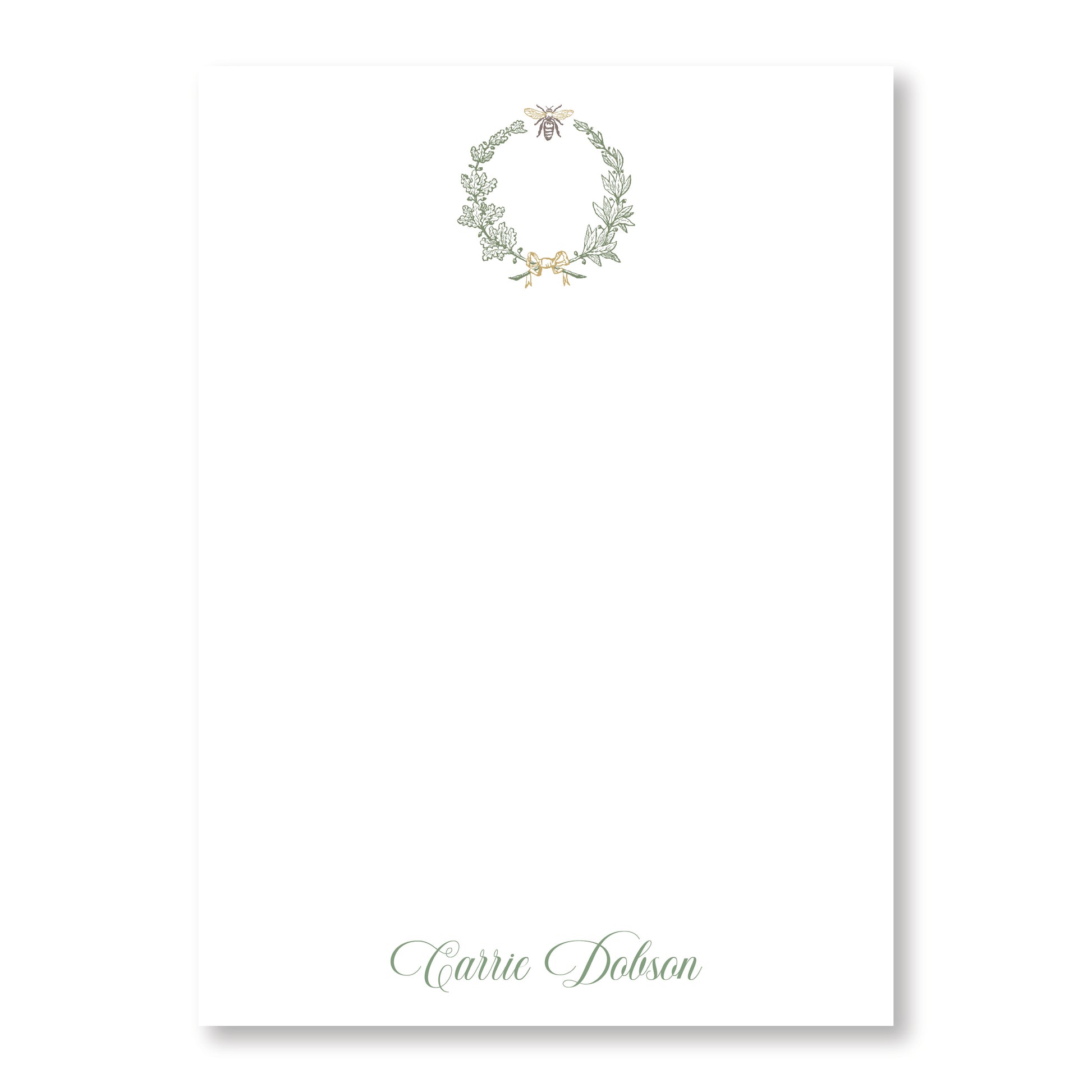 Bee wreath notepad. This can come with matching stationery and enclosure card.