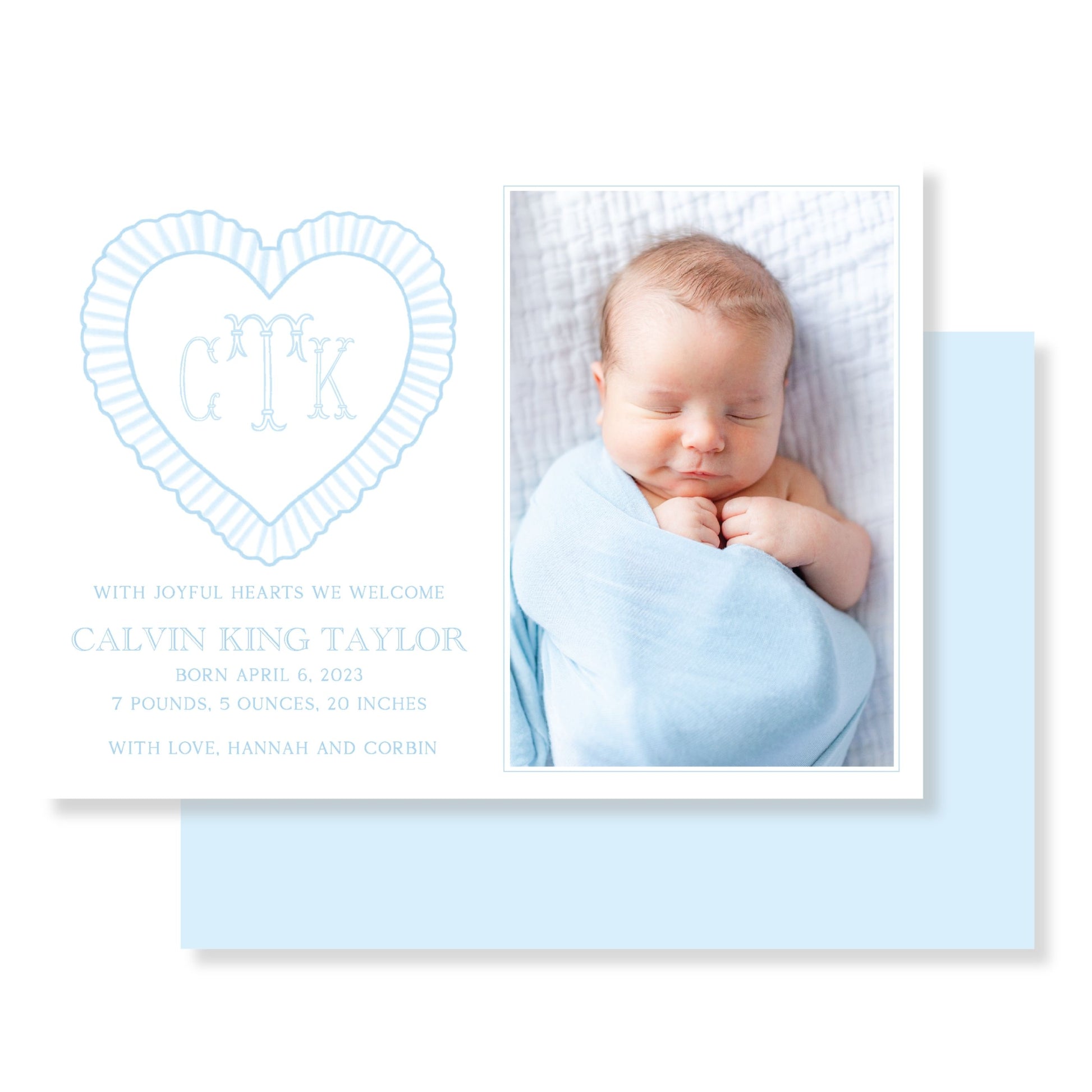 Sweetest Valentine – Blue Heart Monogram Announcement