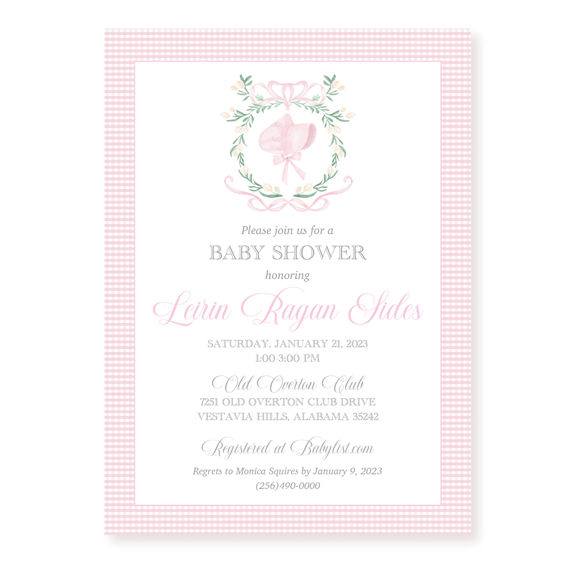 Bonnet Baby Shower Invitation