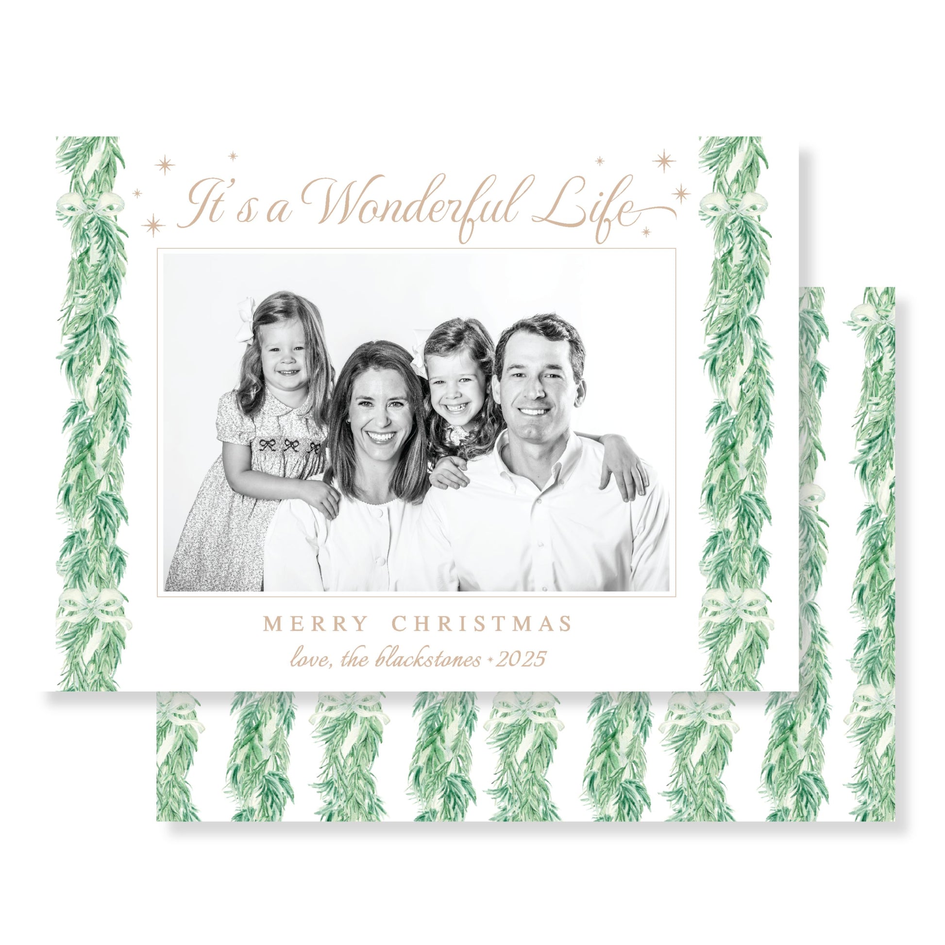 Comfort and Joy Garland Horizontal Christmas Card Photo