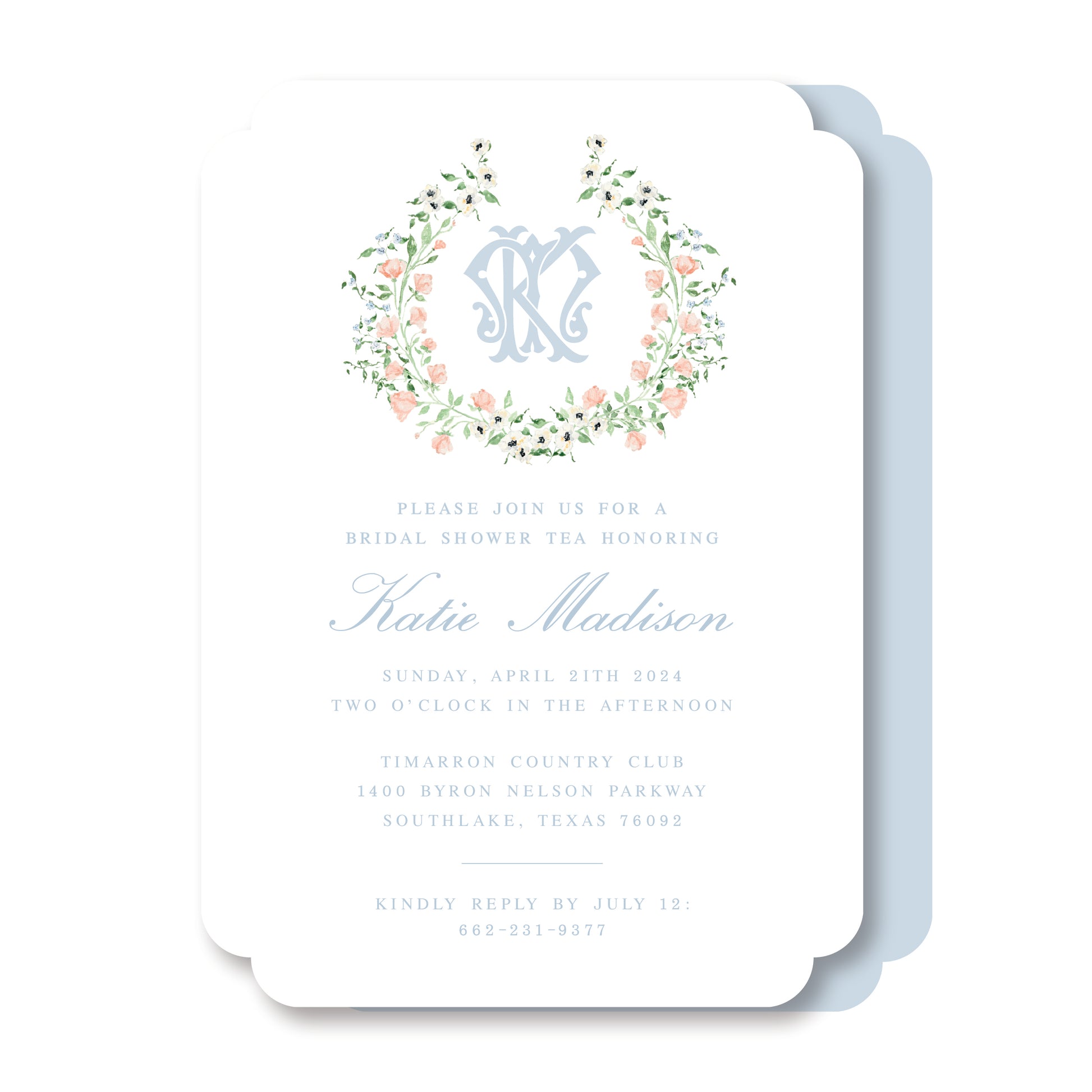 This invitation is printed on 120 lb. eggshell white card stock and includes envelopes to match.