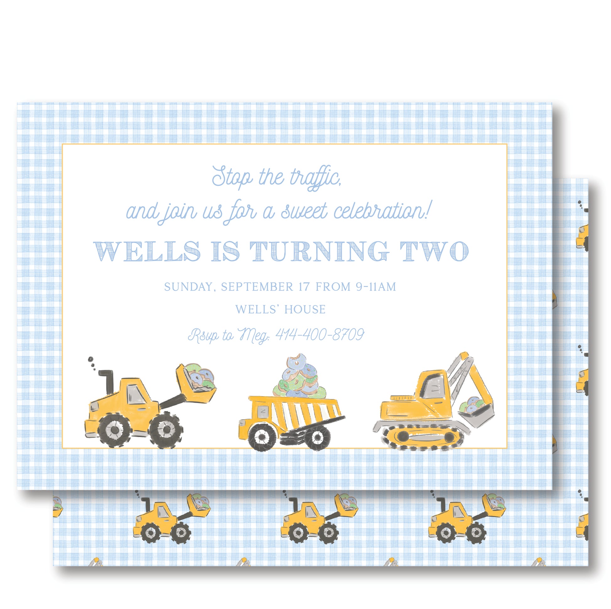 This invitation is printed on 120 lb. eggshell white card stock and includes envelopes.