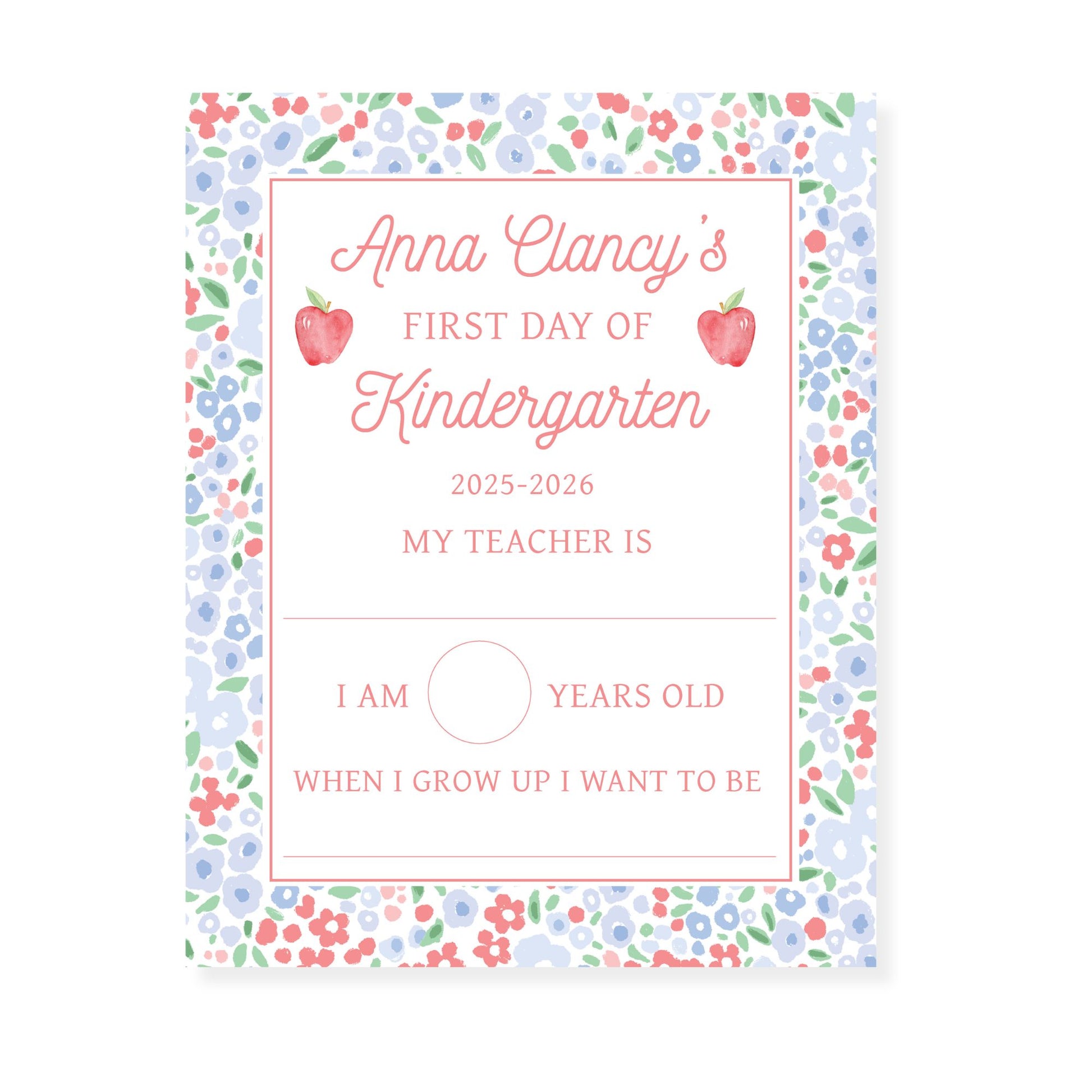 Fill in Blank Ditsy Apple First and Last Day of School Sign