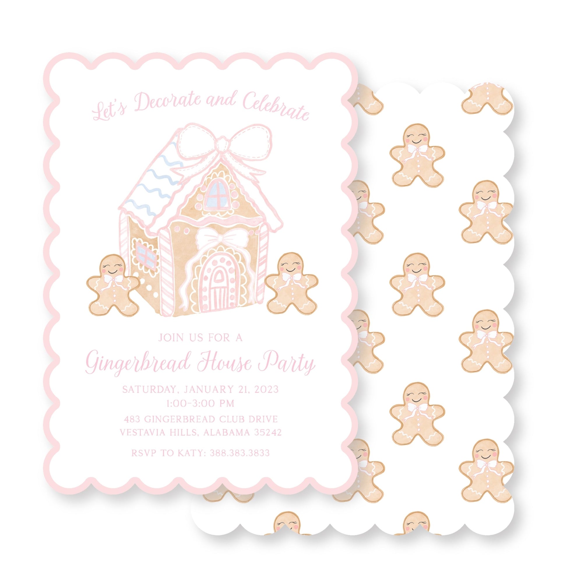 Gingerbread Party Invitations Pink