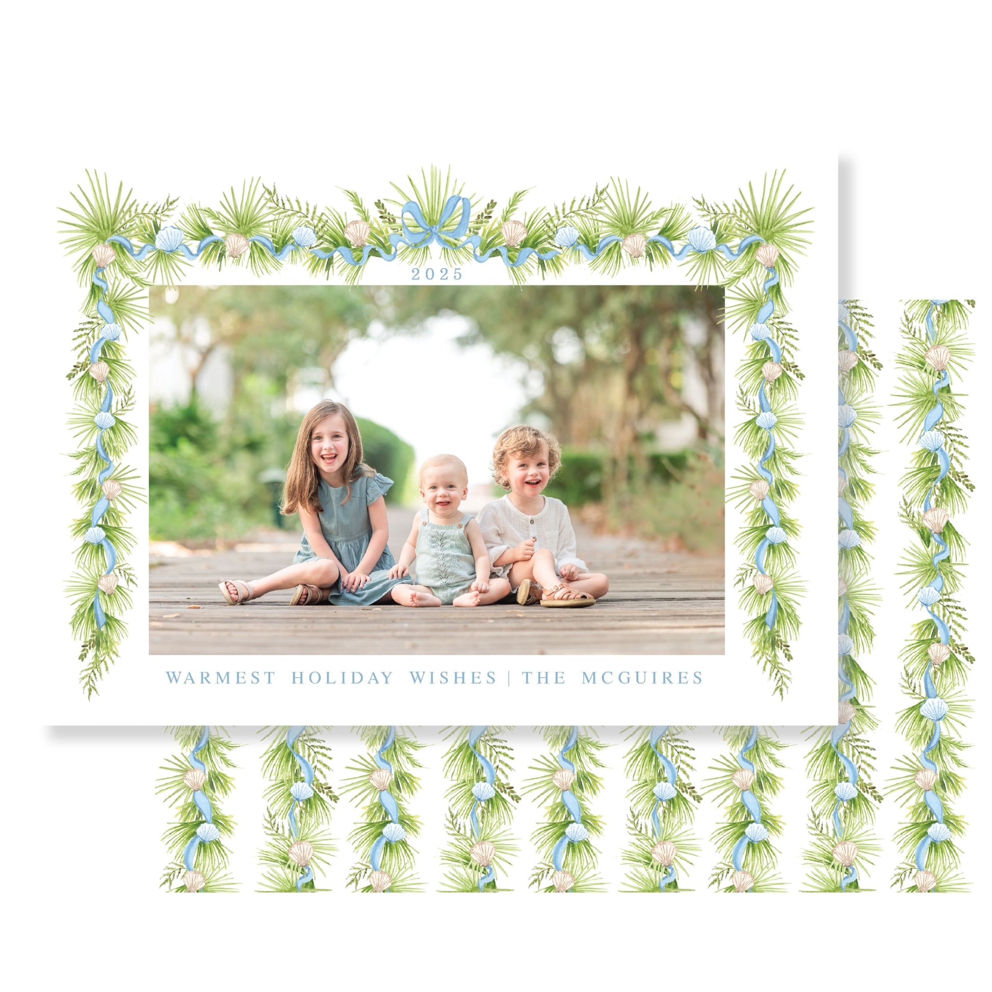 Christmas Cards are 5x7 and printed on heavy, white 120 lb thick cardstock. Standard white envelopes are included.