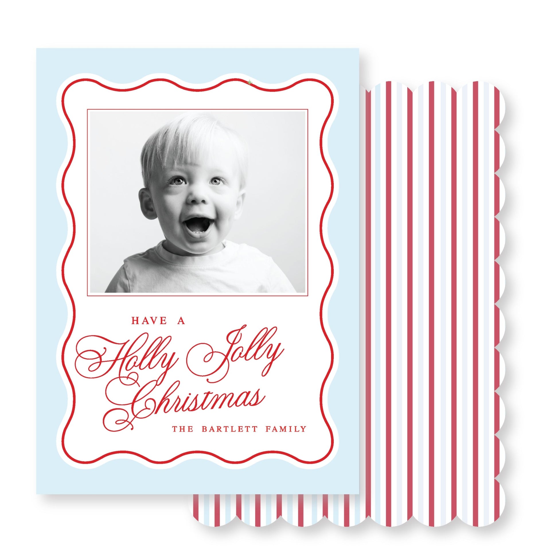 Christmas Cards are 5x7 and printed on heavy, white 120 lb thick cardstock. Standard white envelopes are included.