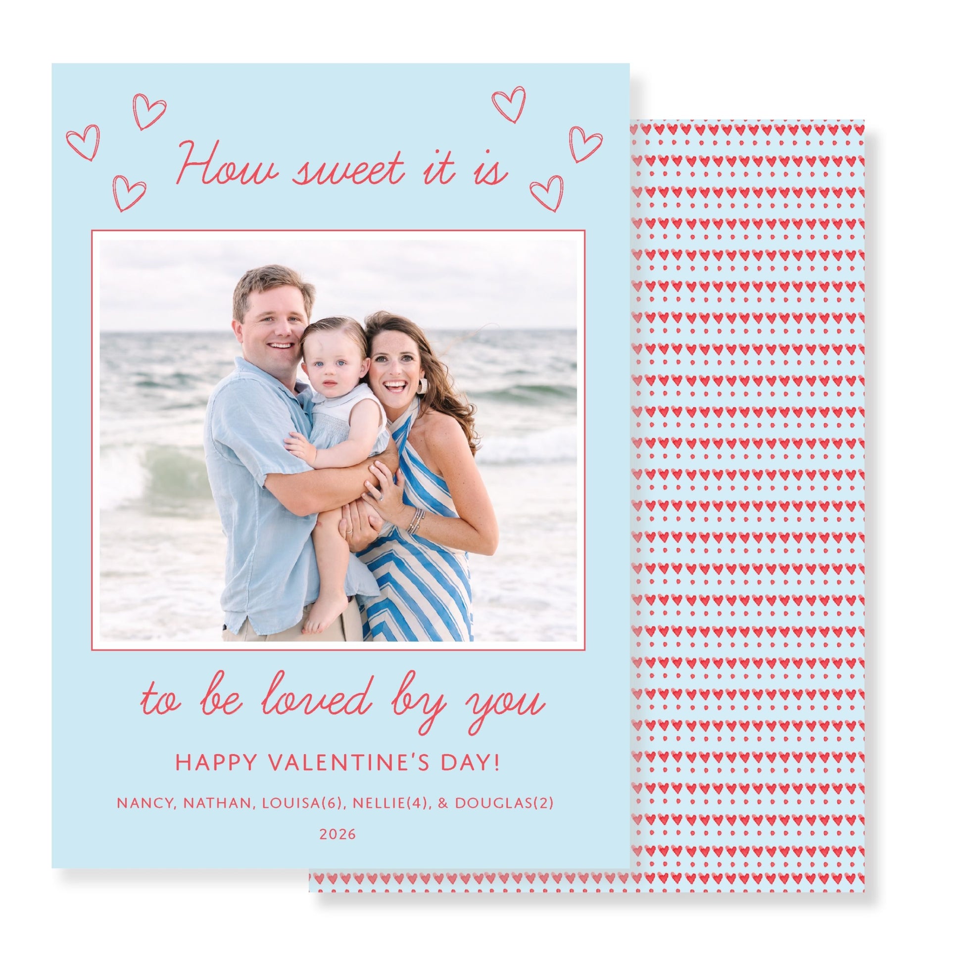 Christmas Cards are 5x7 and printed on heavy, white 120 lb thick cardstock. Standard white envelopes are included.