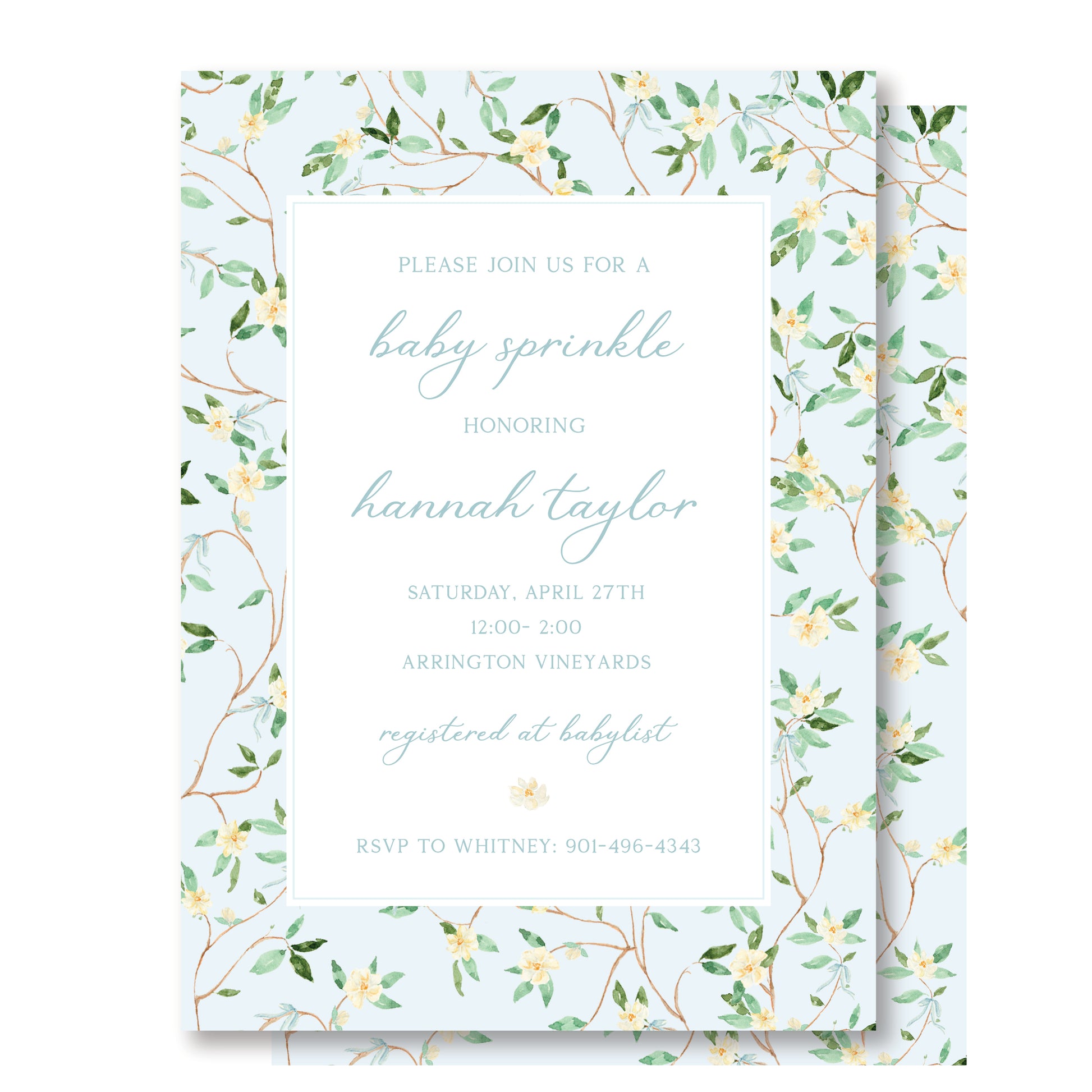 This invitation is printed on 120 lb. eggshell white card stock and includes envelopes to match.