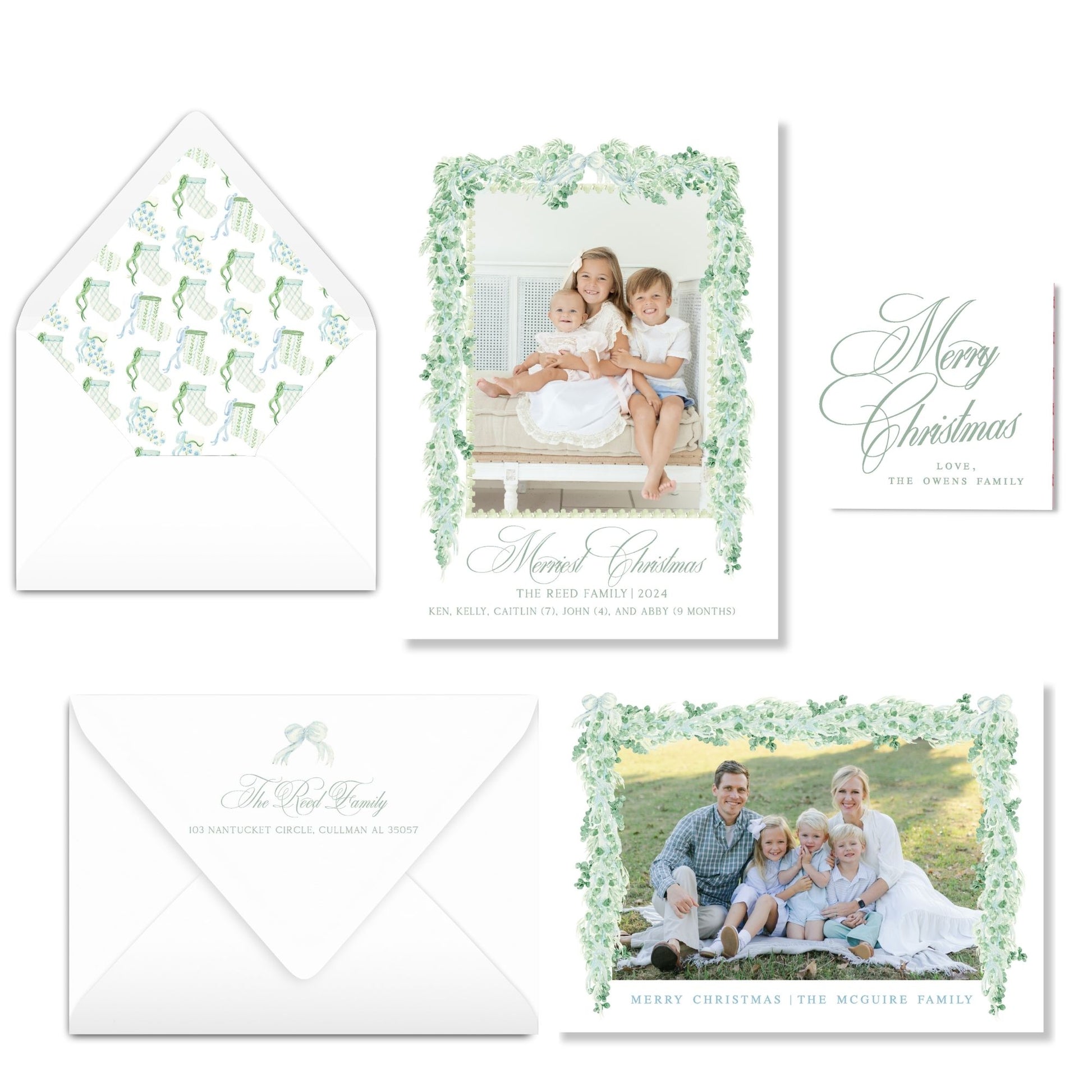 Christmas CardsĀ are 5x7 and printed on heavy, white 120 lb thick cardstock. Standard white envelopes are included.