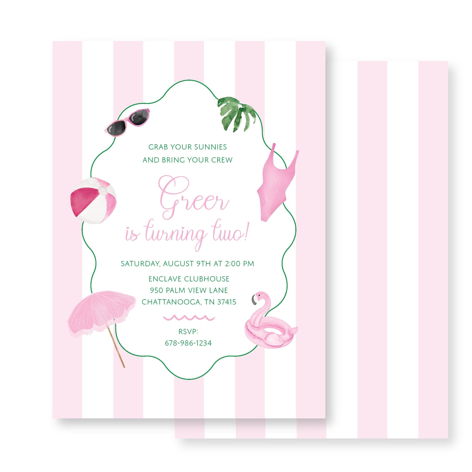This invitation is printed on 120 lb. eggshell white card stock and includes envelopes.