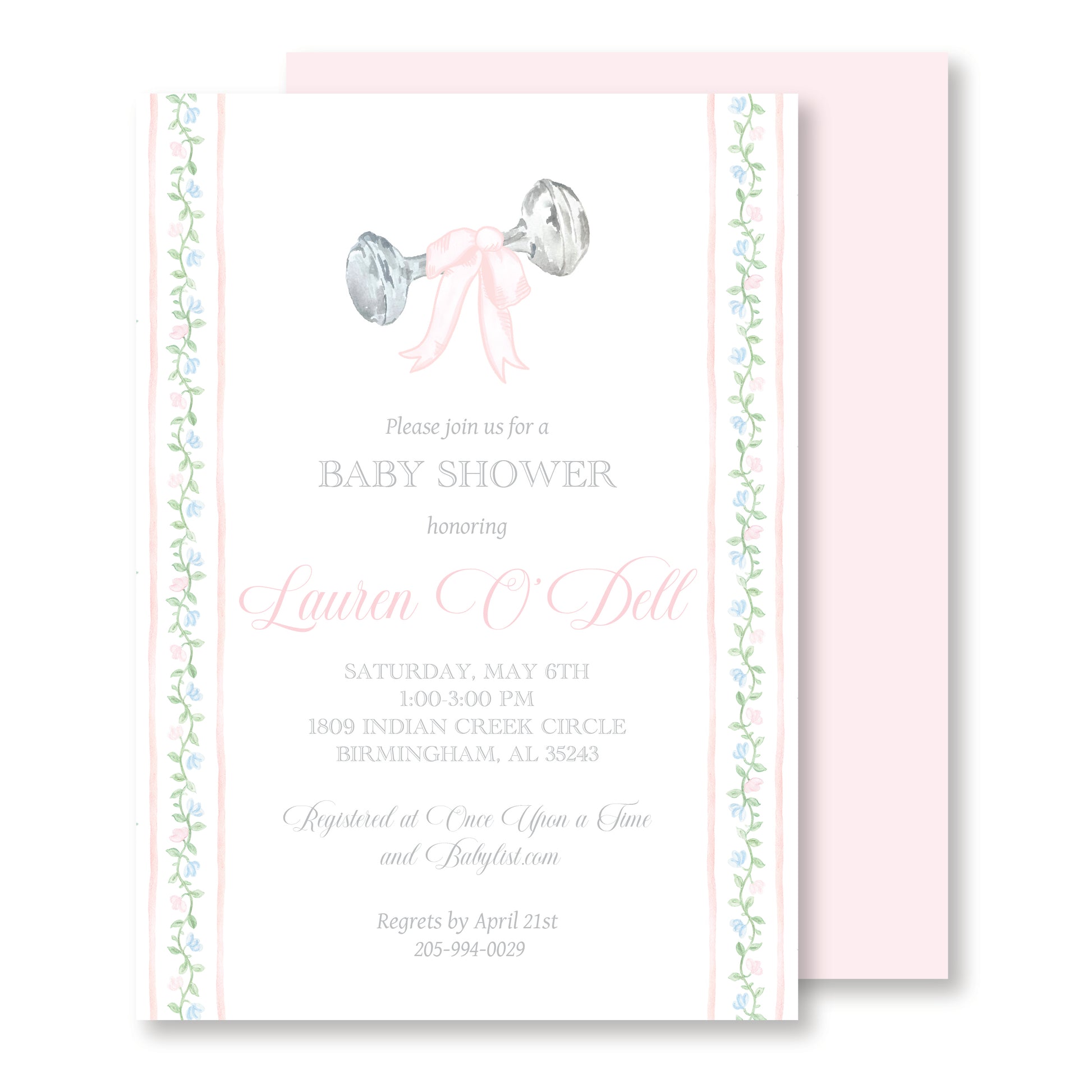 This invitation is printed on 120 lb. eggshell white card stock and includes envelopes to match.