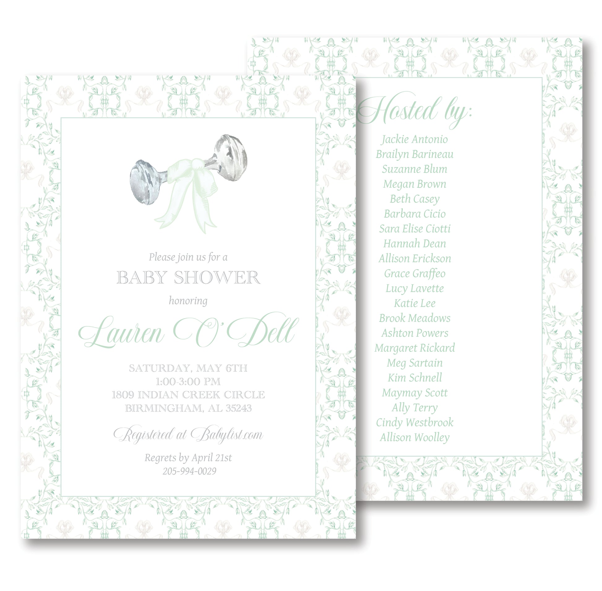Sage Rattle Baby Shower Invitation