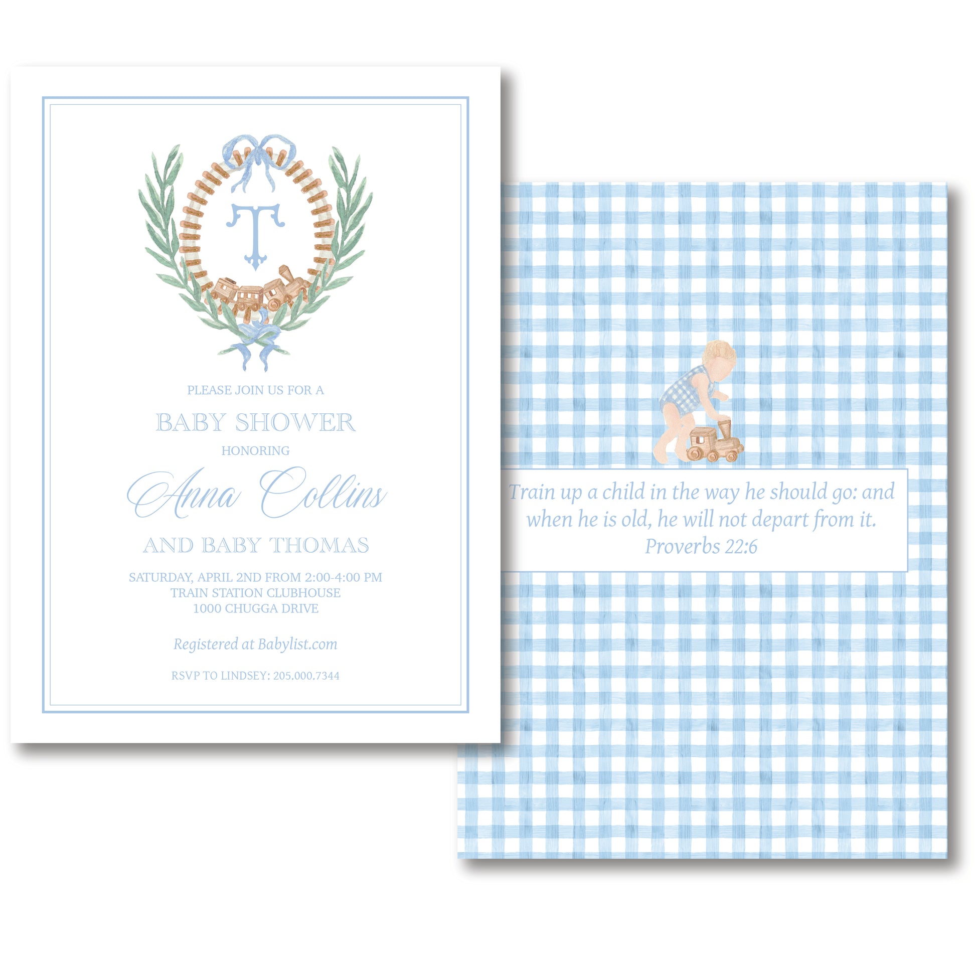 This invitation is printed on 120 lb. eggshell white card stock and includes envelopes to match.