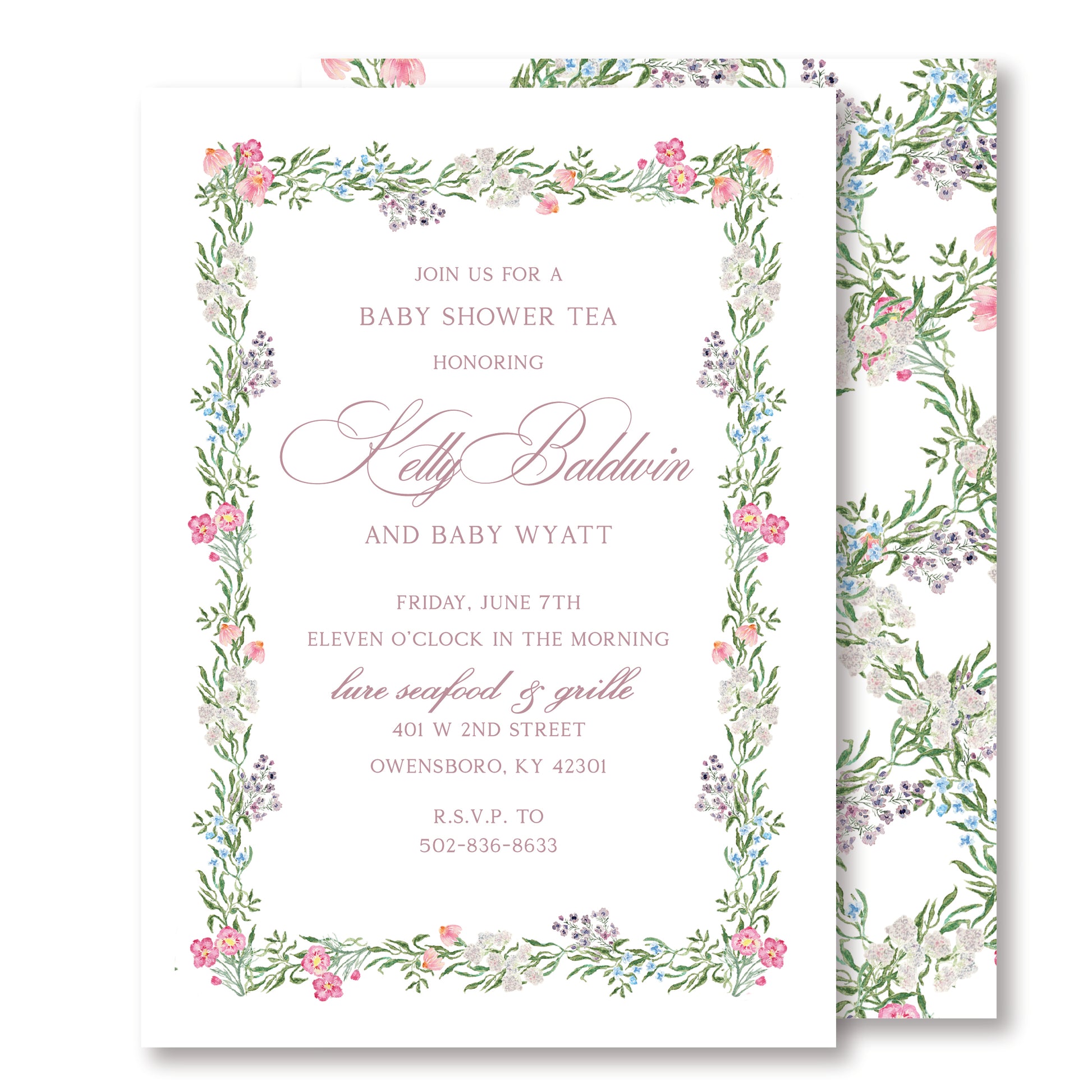 This invitation is printed on 120 lb. eggshell white card stock and includes envelope.